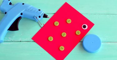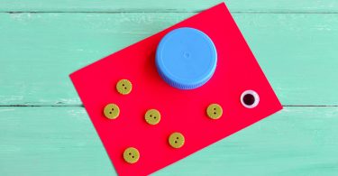 > Πίσω από το καπάκι κολλήστε τα κουμπιά σε τριγωνικό σχήμα για να δημιουργήσετε την ουρά του.