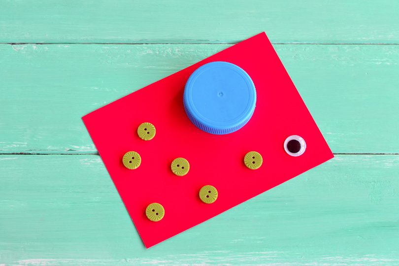 > Πάνω στο χαρτόνι τοποθετήστε το καπάκι περίπου στη μέση και κολλήστε το.
