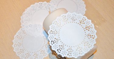– Απλώστε λίγη κόλλα decoupage στην επιφάνεια του κεριού που θέλετε να τοποθετήσετε το χάρτινο σεμεδάκι.