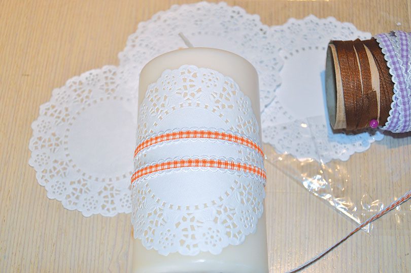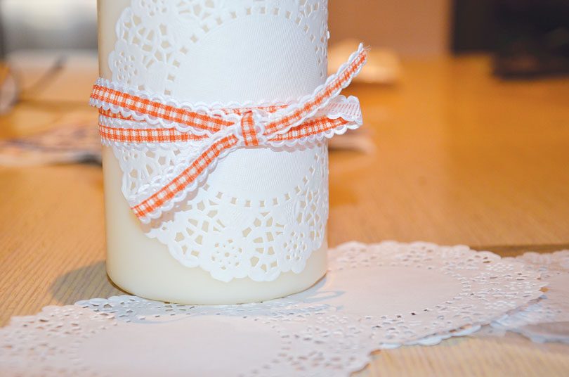 – Δένετε με μια όμορφη λεπτή κορδέλα το κερί δημιουργώντας ένα φιόγκο.