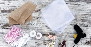 > Κόψτε τις κορδέλες από οργάντζα και δέστε τες σε έναν σφιχτό κόμπο κάτω από το τιμόνι του ποδηλάτου μαζί με το φουντάκι.