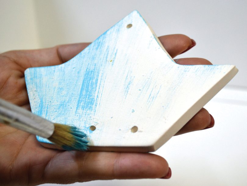 > Περάστε διάσπαρτες πινελιές στην επιφάνεια του καραβιού και από τις δύο πλευρές, στην απόχρωση που ταιριάζει σύμφωνα με το θέμα της βάπτισης.