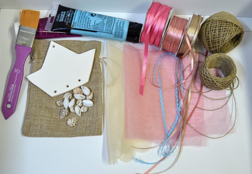 – Γάζα, τούλι, κοχύλια σε αντίστοιχες αποχρώσεις
