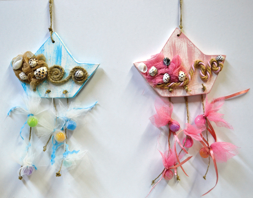 – Γάζα, τούλι, κοχύλια σε αντίστοιχες αποχρώσεις