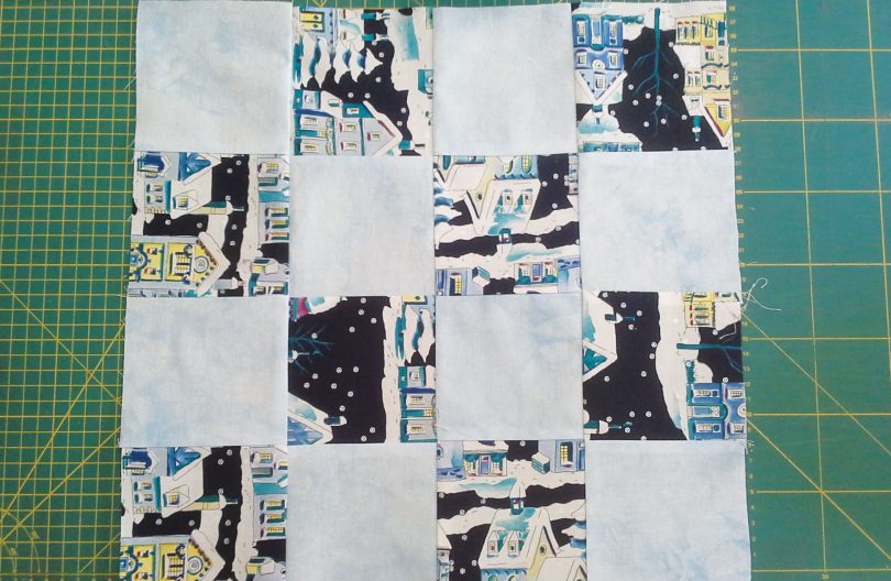 Στο σημερινό μάθημα, θα κόψετε 16 τετράγωνα με πλευρά 11,5 εκ., γιατί λέω στην επόμενη ανάρτηση να σας δείξω πώς κάνουμε ένα μαξιλαράκι. Αν θέλετε ένα μαξιλάρι δίχρωμο (όπως το παράδειγμά μας), κόψτε 8 και 8 τετράγωνα από δυο διαφορετικά υφάσματα, αλλιώς, ό,τι σας αρέσει.