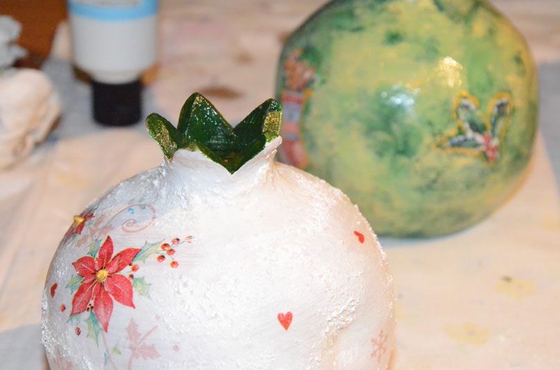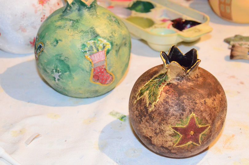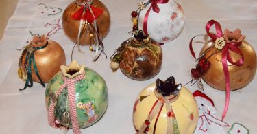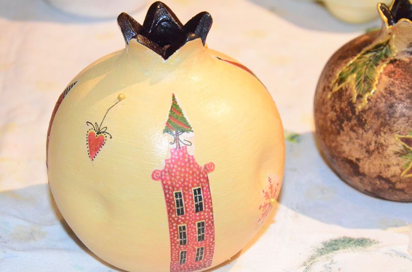 > Κάποιο ρόδι μπορείτε απλά να το βάψετε με ένα χρώμα (π.χ. χρυσό) και να το στολίσετε με διάφορα διακοσμητικά όπως σατέν κορδελίτσες, χαντρούλες και ότι άλλο σας αρέσει.