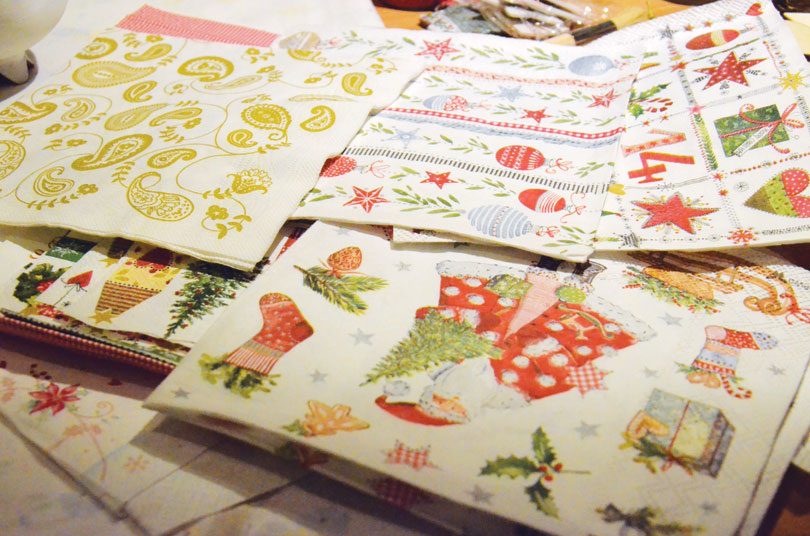 – Ριζόχαρτα ή χαρτοπετσέτες με μοτίβα χριστουγεννιάτικα