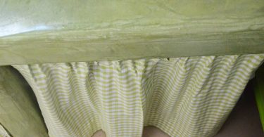 > Για το στρίφωμα στο κάτω μέρος, δεν χρειάζεται να μετρήσετε! Είναι πολύ πιο εύκολο να κρεμάσετε την κουρτίνα και έπειτα να καρφιτσώσετε το στρίφωμα, ελάχιστα χιλιοστά πιο πάνω από το πάτωμα. Ξεκρεμάστε την και γαζώστε.
