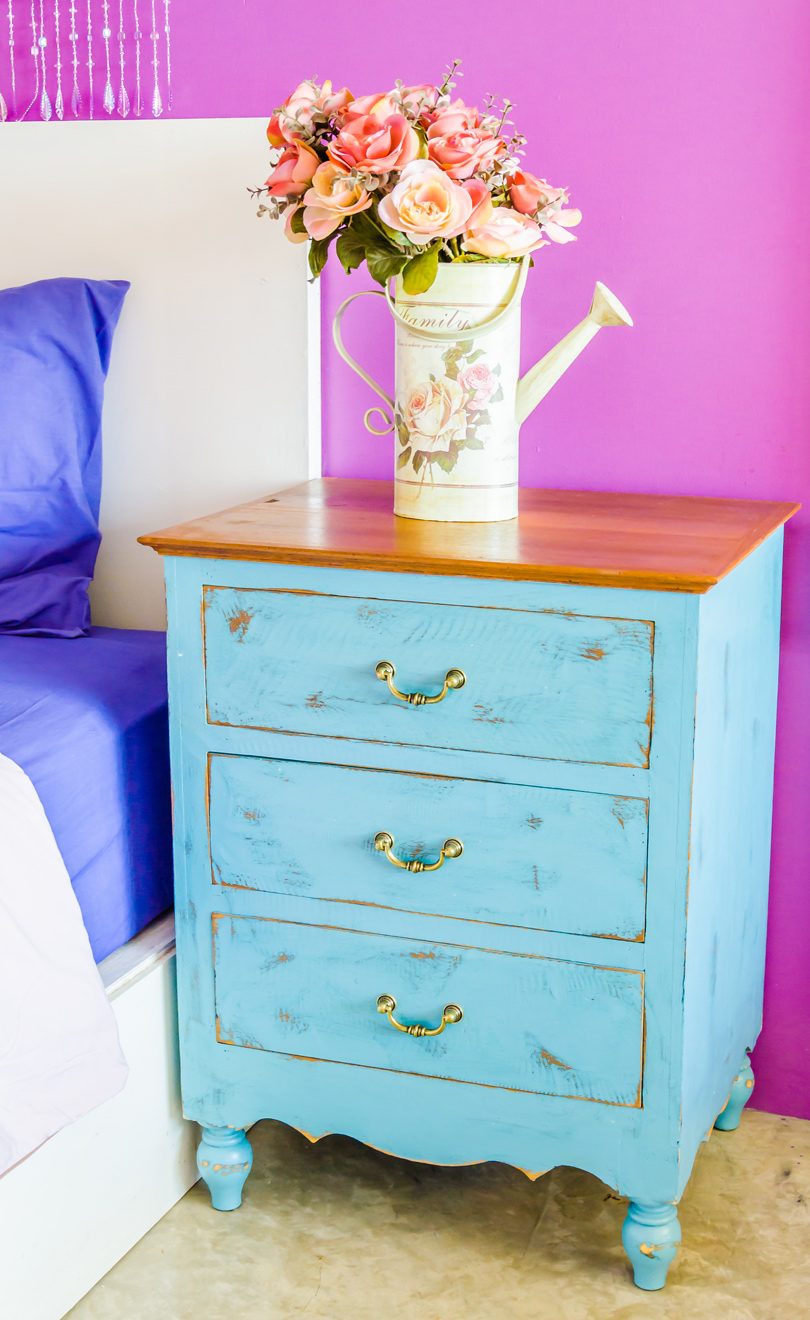Τα παλιά, κομψά έπιπλα ή αντικείμενα διακόσμησης μπορούν να δημιουργήσουν αυτό το στυλ στη διακόσμηση του χώρου σας, αφού δημιουργήσετε σε κάποια σημεία τους (γωνίες, πλαϊνά κλπ.) την όψη της φθοράς με τη βοήθεια ενός γυαλόχαρτου έτσι ώστε να εμφανιστούν τα προηγούμενα «στρώματα» μπογιάς.